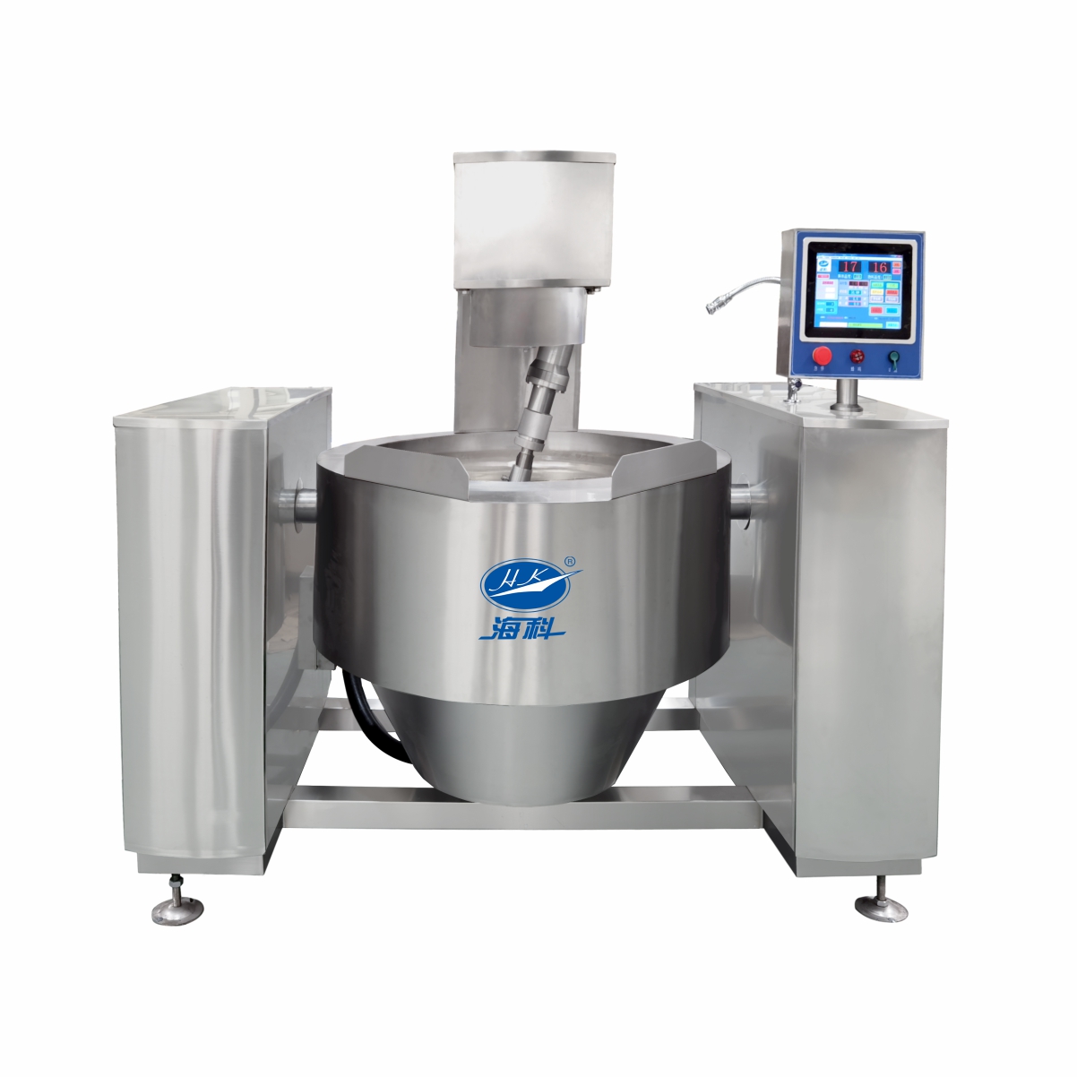電磁搖鍋采?電磁加熱原理,具有微電腦控溫技術(shù)、智能補溫技術(shù),采??星式刮底攪拌,不粘鍋?攪拌死?,操作簡便輕觸按鈕即可實現(xiàn)鍋體翻轉(zhuǎn)及攪拌。本機可?動精確控制溫度、攪拌速度及加熱時間,可解決在加熱過程中各?藝參數(shù)依靠操作者經(jīng)驗來控制產(chǎn)品質(zhì)量的問題,避免在加?過程中?為因素對產(chǎn)品質(zhì)量產(chǎn)?的影響,提??藝可控性,保證產(chǎn)品質(zhì)量。